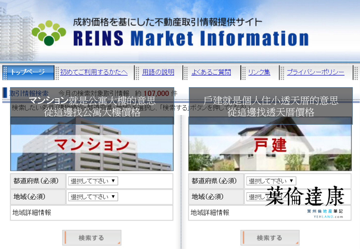 japanprice.yehland.com進入上述日本不動產實價登錄系統查詢網址